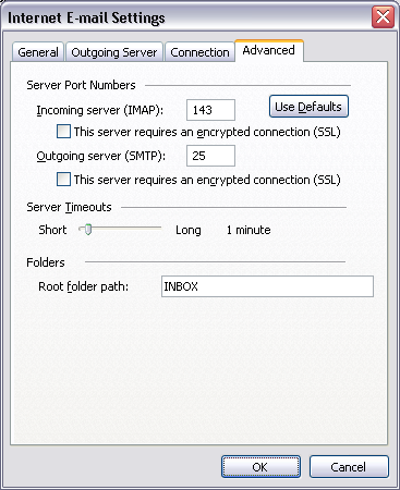 Selectați tabul Advanced și în câmpul Root folder path introduceți INBOX. Selectați OK și Next