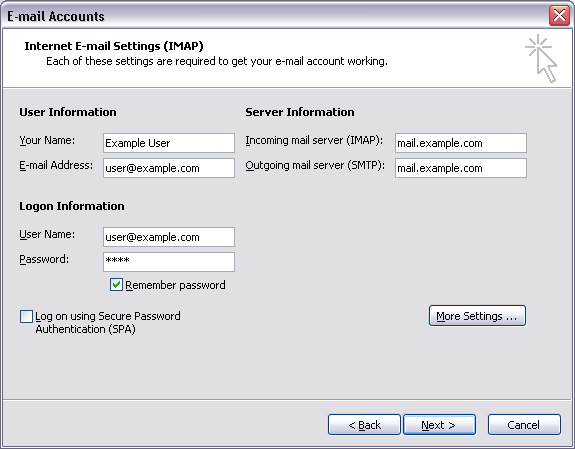În câmpul Incoming mail server (IMAP) si câmpul Outgoing mail server (SMTP) introduceți adresa serverului de e-mail.
