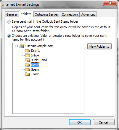 Opcionális, ha azt kívánja, hogy az elküldött üzenetek a szerveren tárolódjanak és nem a Personal Folders Sent Items mappájában.